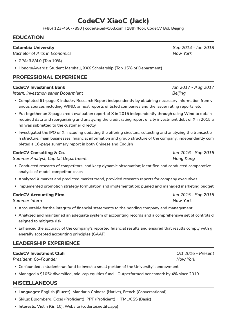 校招简历模板_校招个人简历免费下载 - CodeCV简历