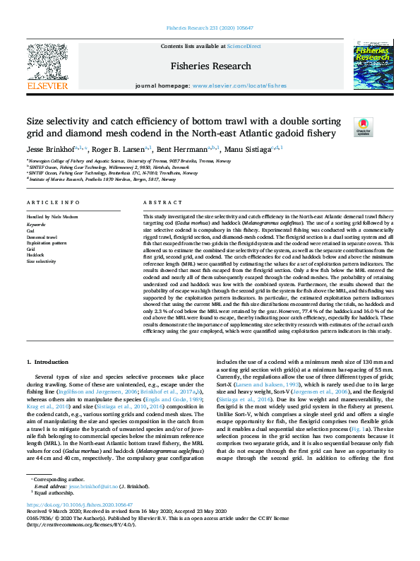 (PDF) Size selectivity and catch efficiency of bottom trawl with a ...