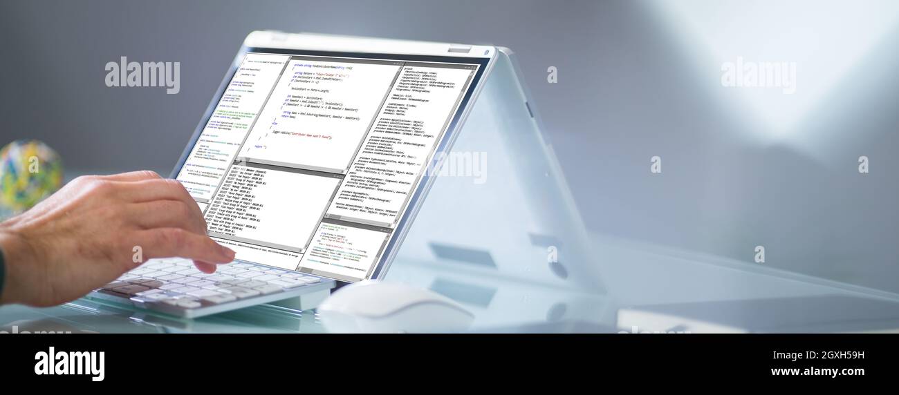 Programmer Or Coder At Office Desk Using Laptop Stock Photo - Alamy