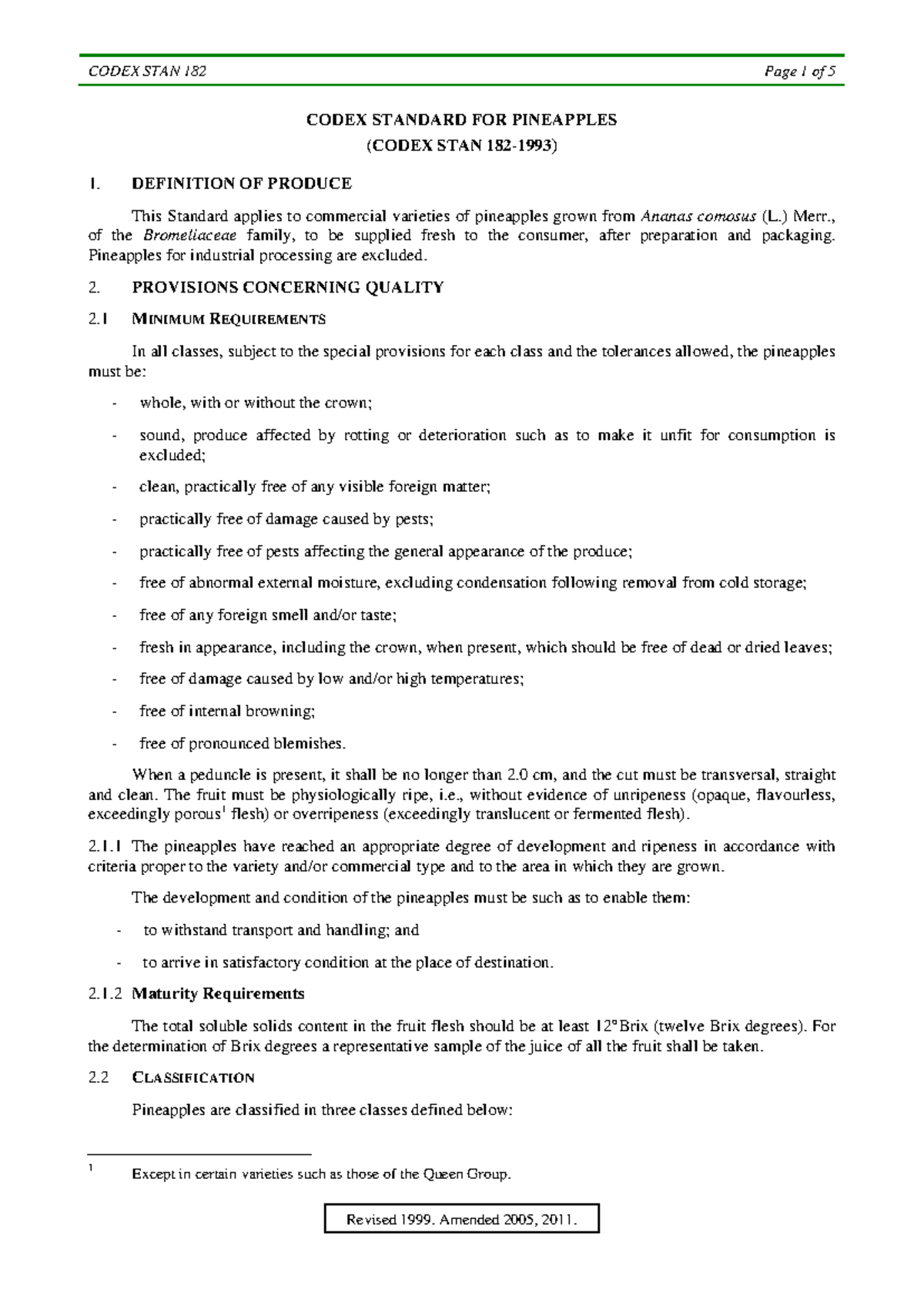CODEX STAN 182: Standard for Pineapples - Quality & Packaging ...