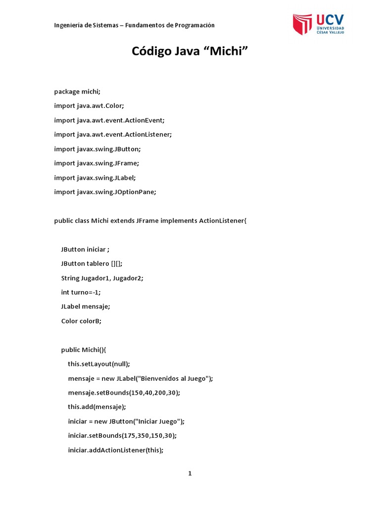 Código Java MICHI | PDF | Programación de computadoras | Enseñanza de ...