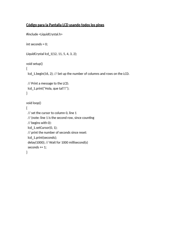 Actividad 16-Códigos para Pantallas LCD (Normal y Con Módulo I2C) | PDF