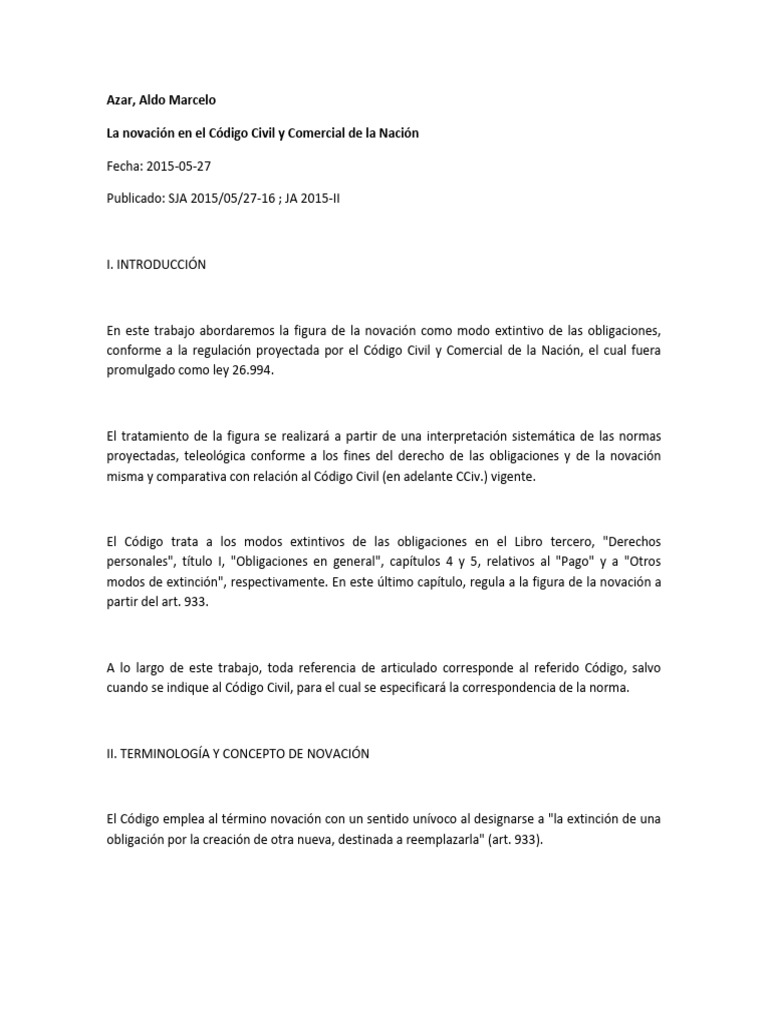 Azar_La_novacion_en_el_Codigo_Civil_y_Comercial_de_la_Nacion | PDF ...