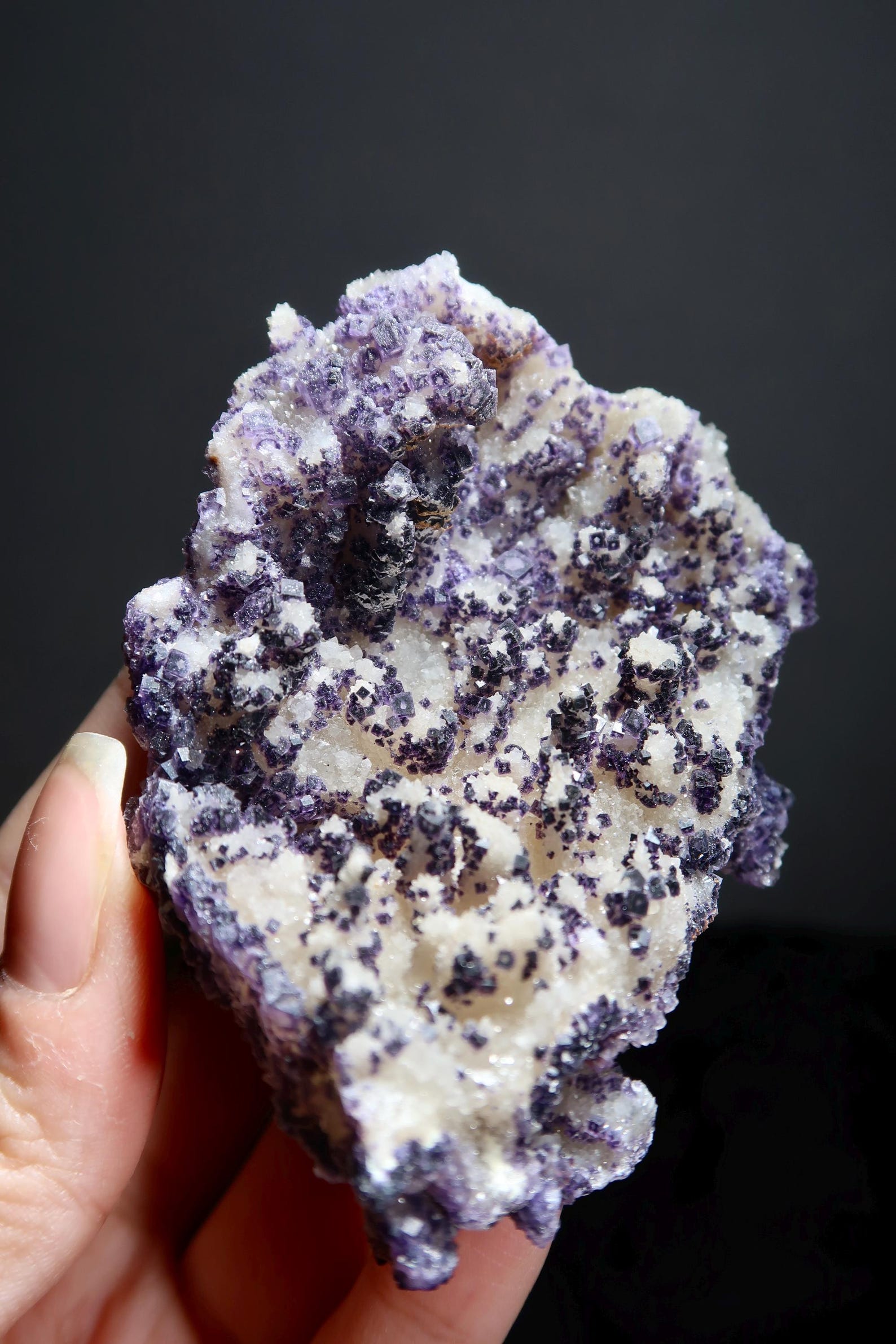 Fluorita con código QR de dados / Fluorita púrpura natural sobre matriz ...