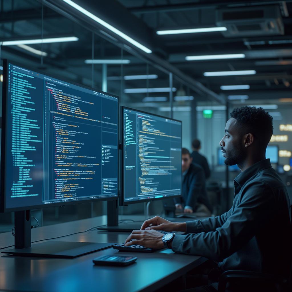 Cyber Security Agency Female Programmer Coding Stock Photo 2216535631 ...