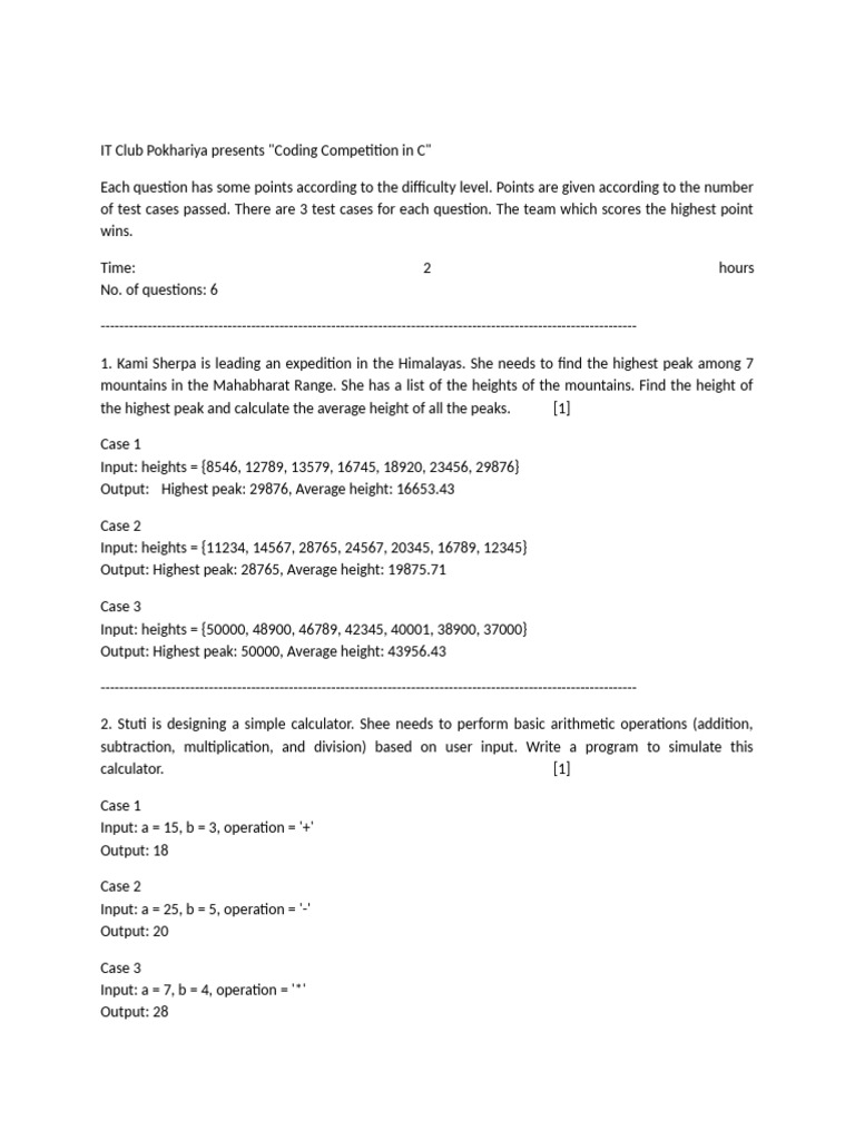Coding Competition Questions | PDF