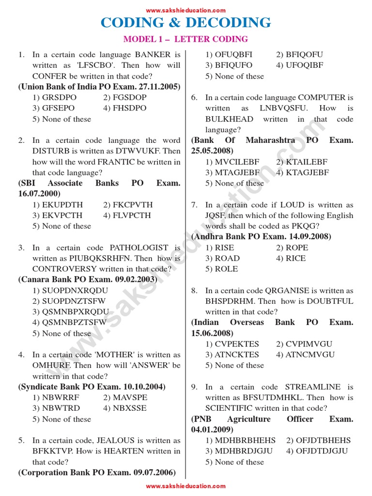 TOP 50 Coding Decoding Questions For IBPS Clerk Exams | PDF | Consonant ...