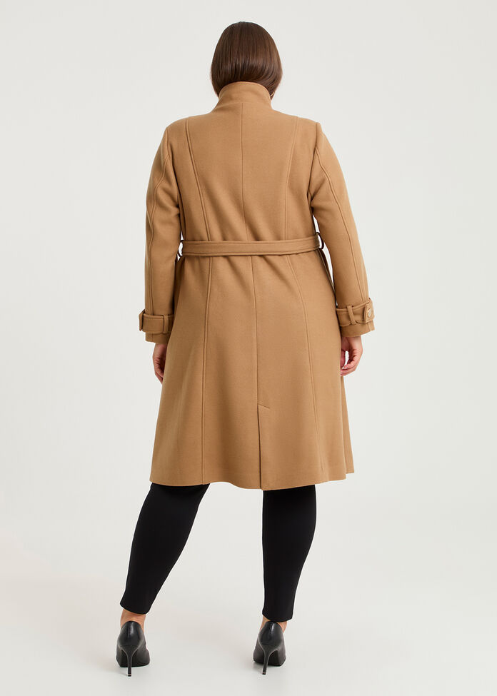 Shop Plus Size Funnel Neck Melton Coat, Brown | Taking Shape NZ