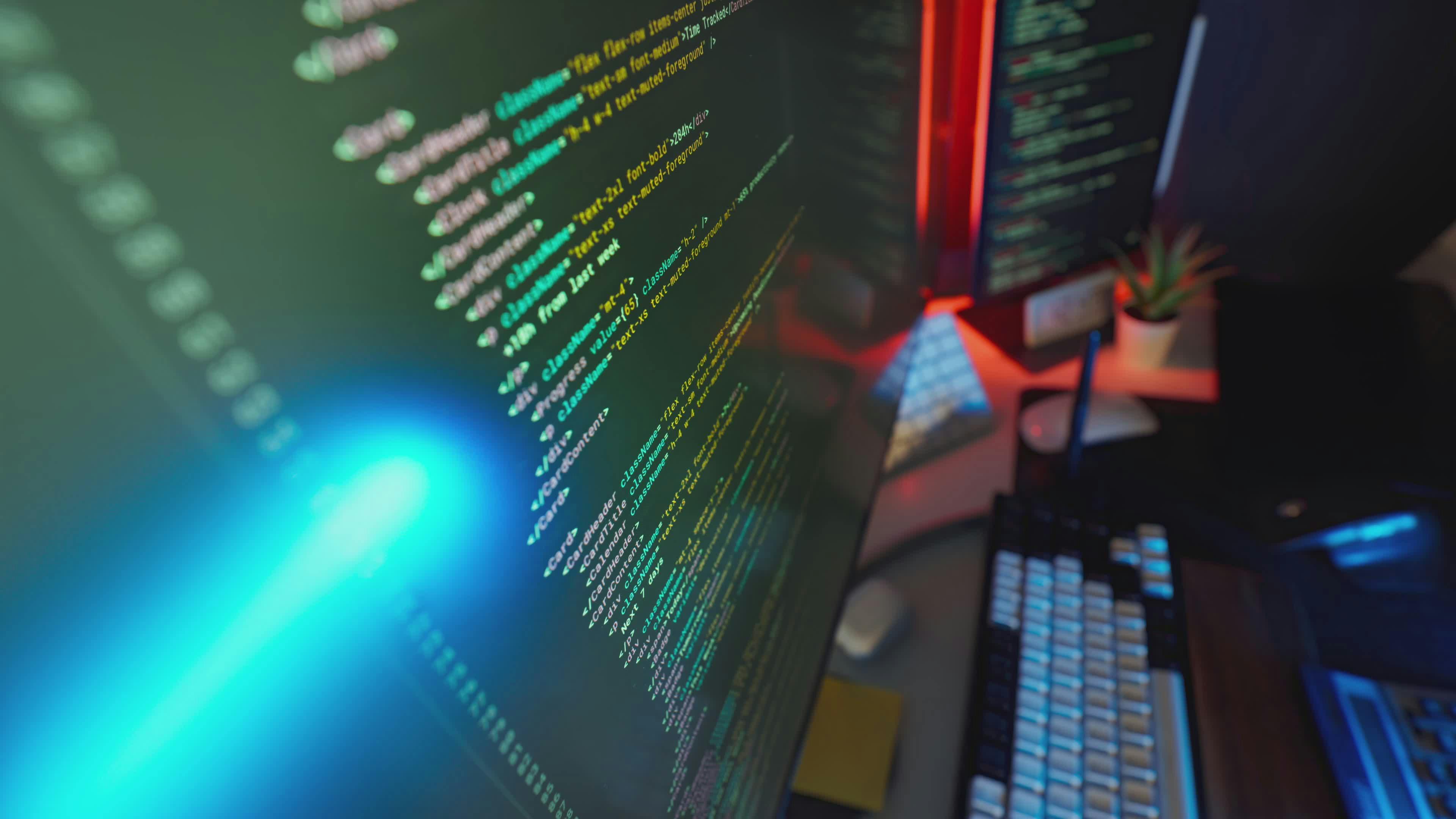 Vibrant Computer Coding Workspace Setup Free Stock Video Footage ...
