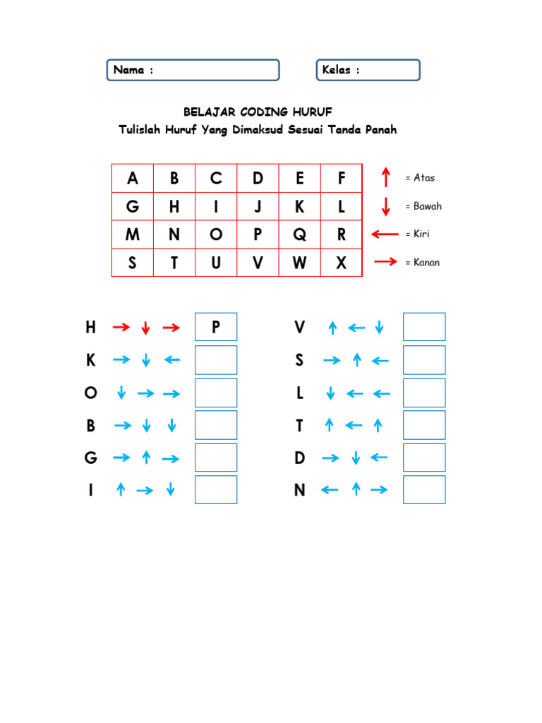 Worksheet Coding for Kids | LKPD Coding untuk TK/SD Kelas Rendah Huruf ...