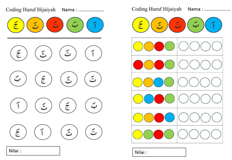 Coding Hijaiyah - menulis huruf sesuai kode warna di 2025 | Materi guru ...