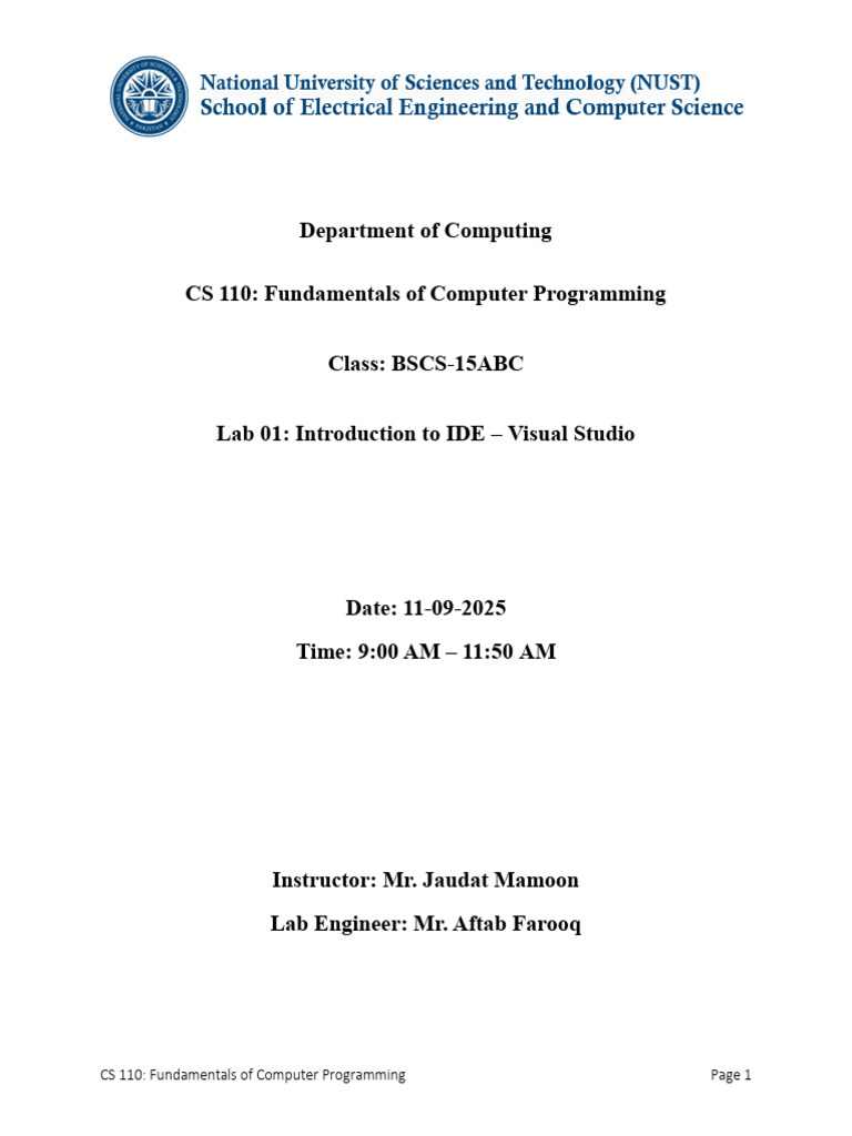 Computer Programming Lab 1 | PDF | Integrated Development Environment ...