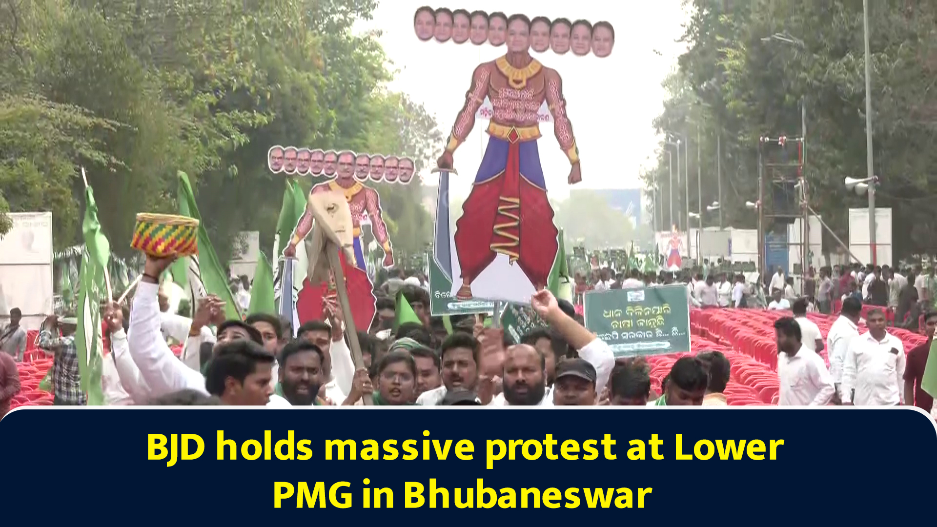BJD holds massive protest at Lower PMG in Bhubaneswar