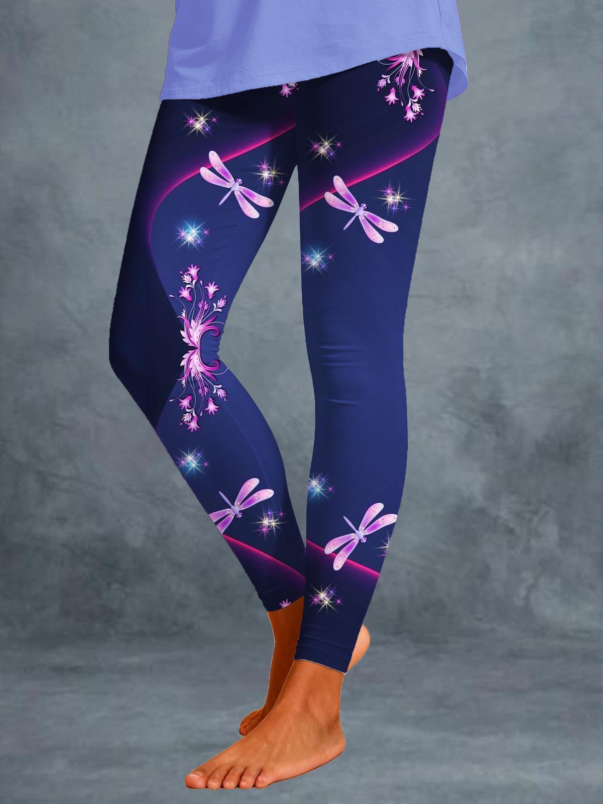 Neon Purple Dragonfly Floral Print Leggings – Wonder closets