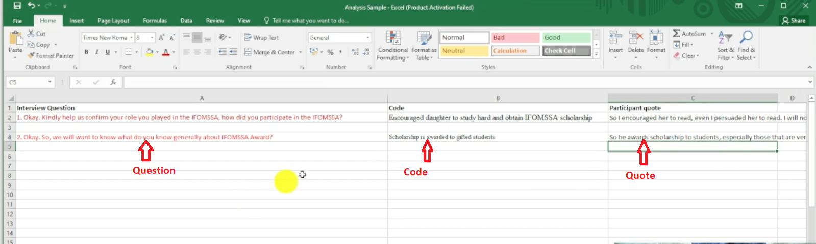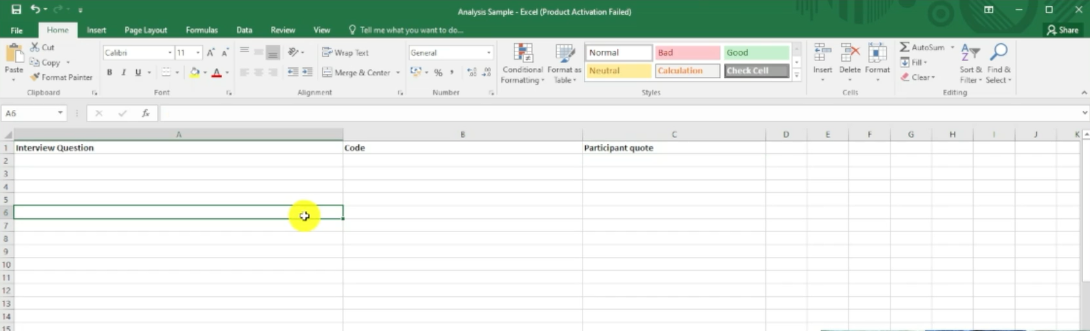 Qualitative Data Coding Excel Template