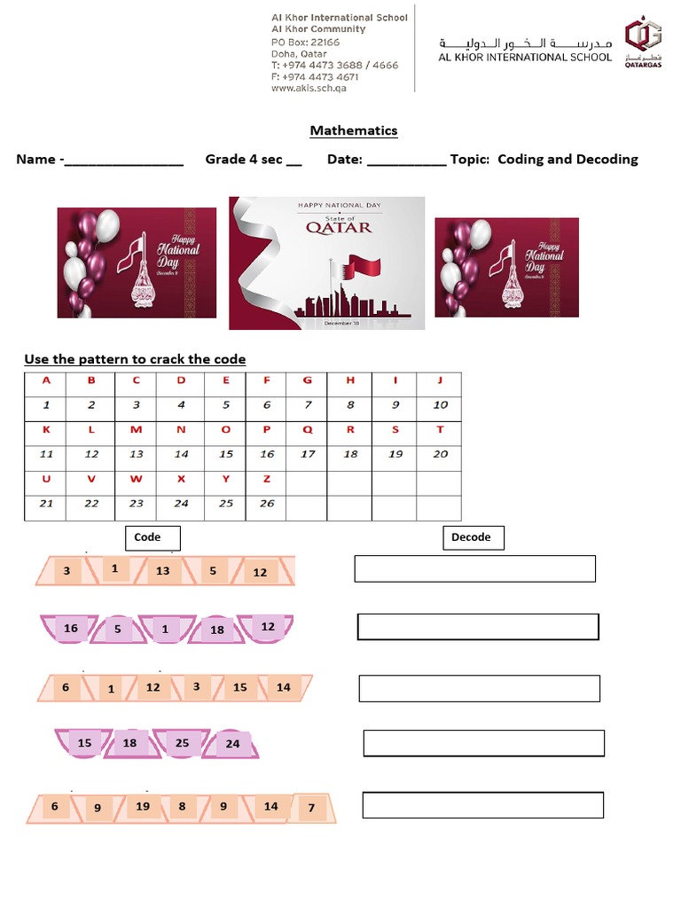 Coding and Decoding Worksheet for Grade 4 | PDF