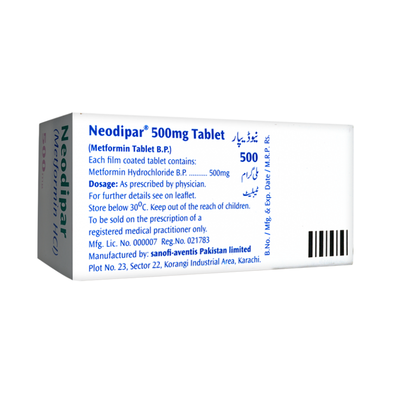 Neodipar (500mg) 50 Tablets Price in Pakistan - Uses, Dosage, Side Effects
