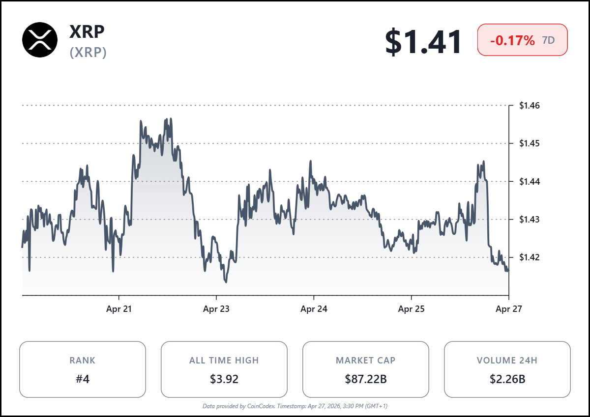 Аналіз ціни XRP: утримується близько $1,41, діапазон звужується ...