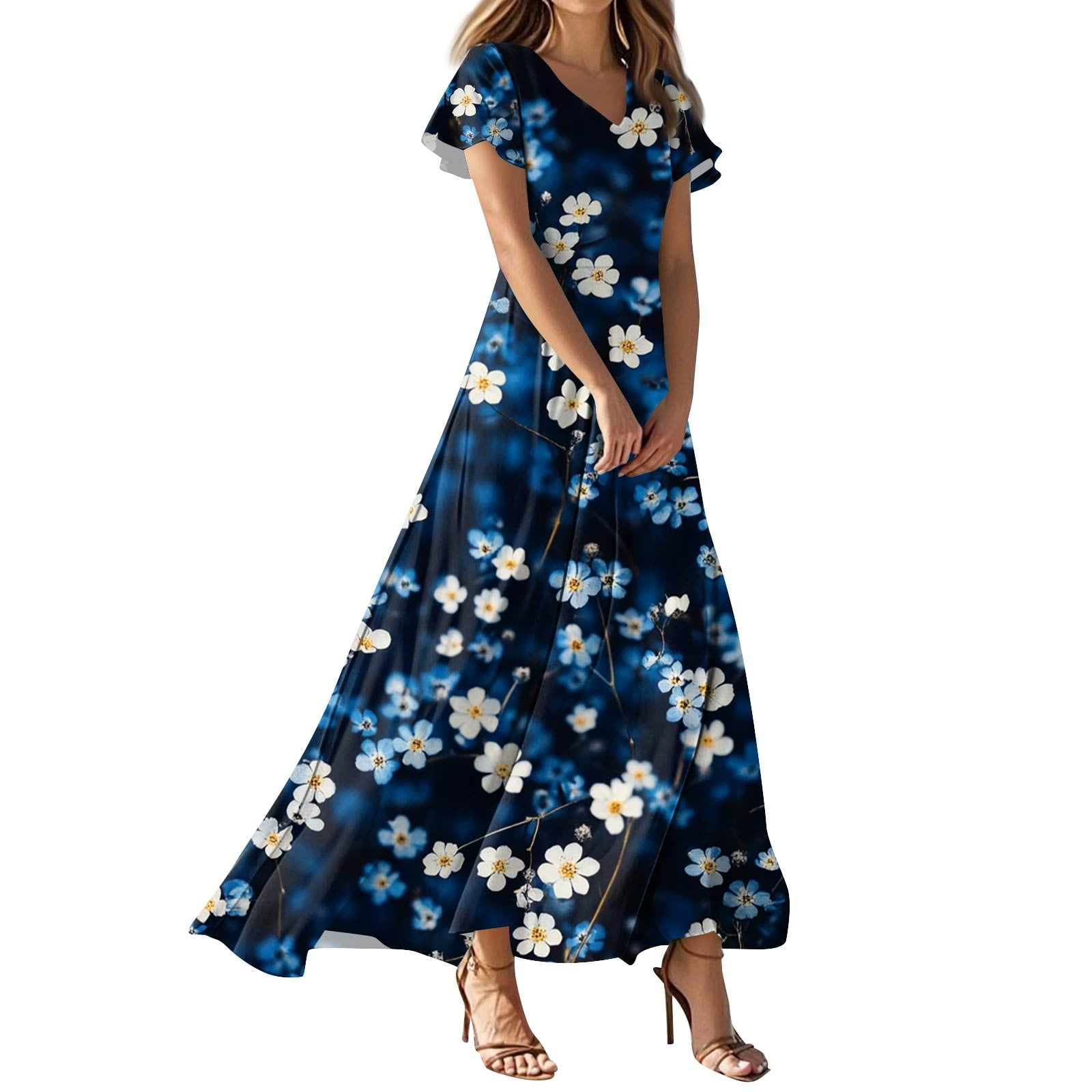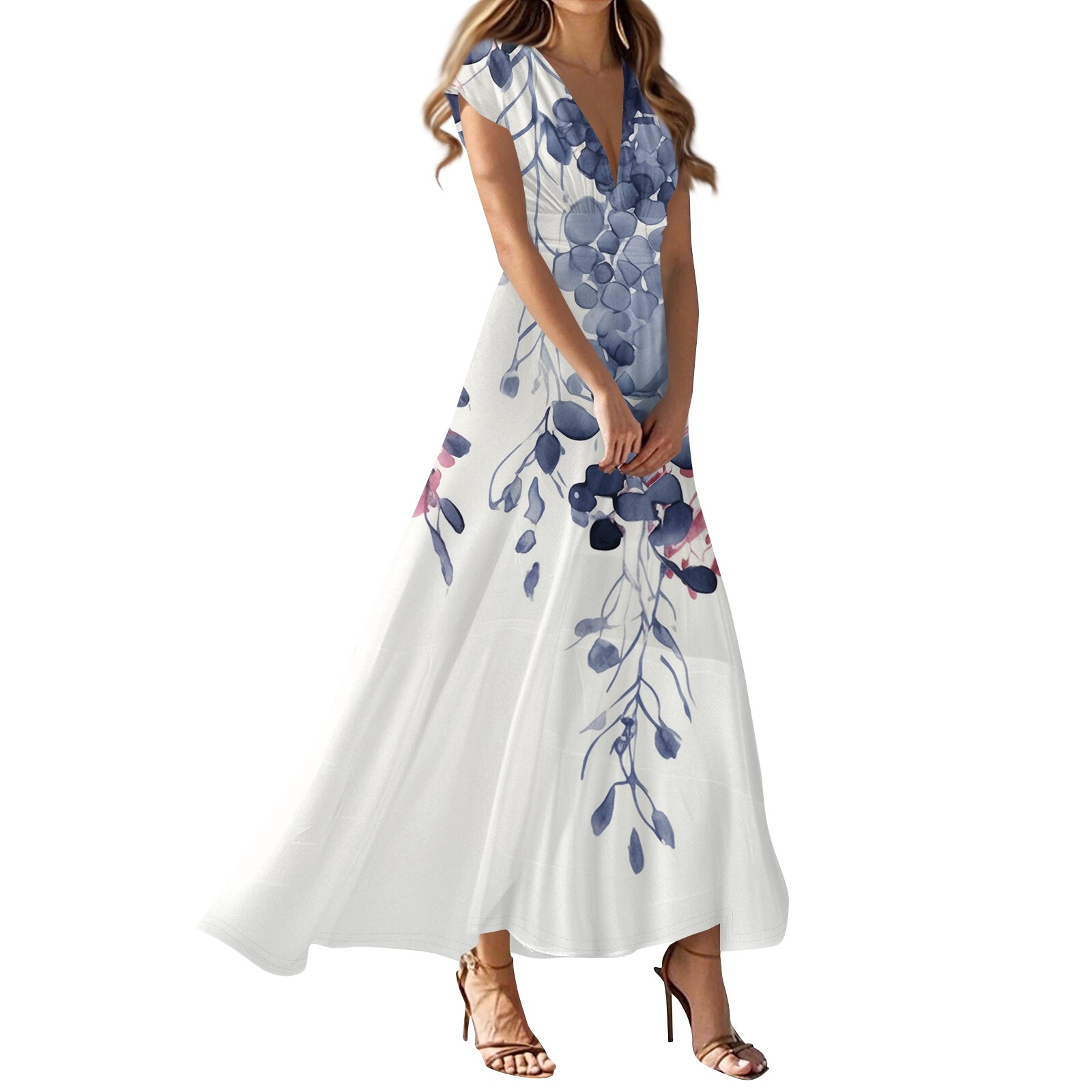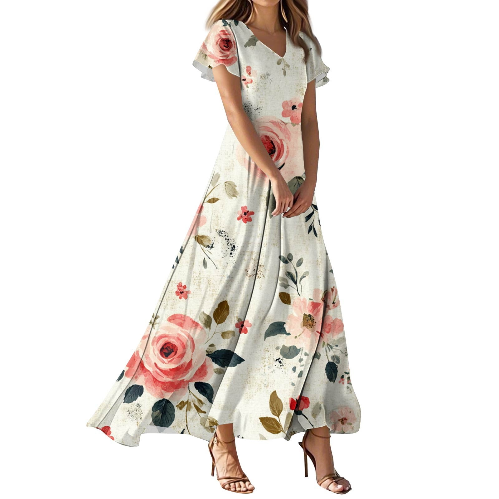 Codres Summer Beach Dresses for Women 2025 V Neck Flowy Maxi Dress ...