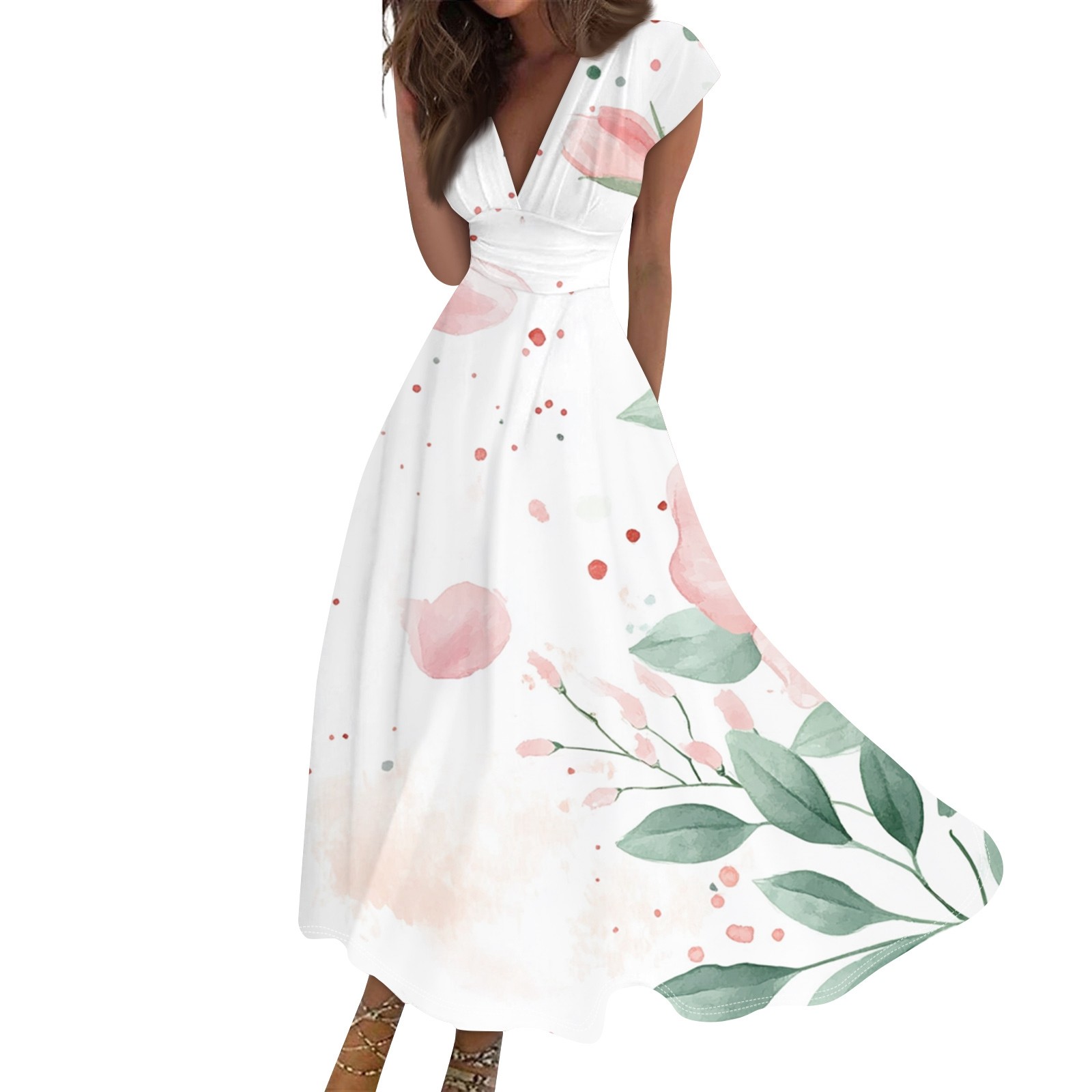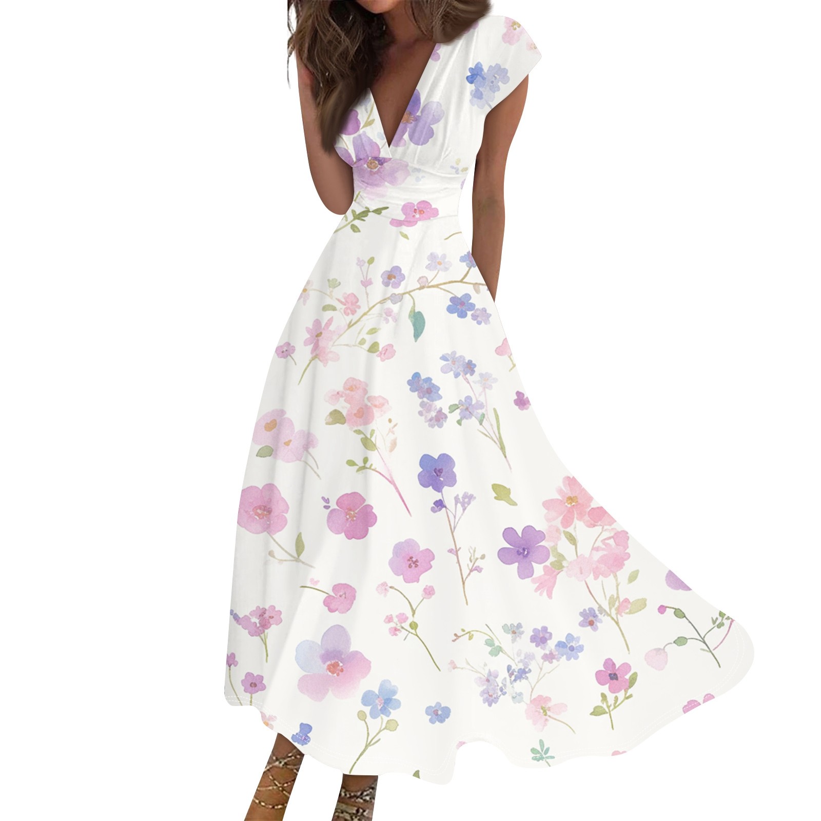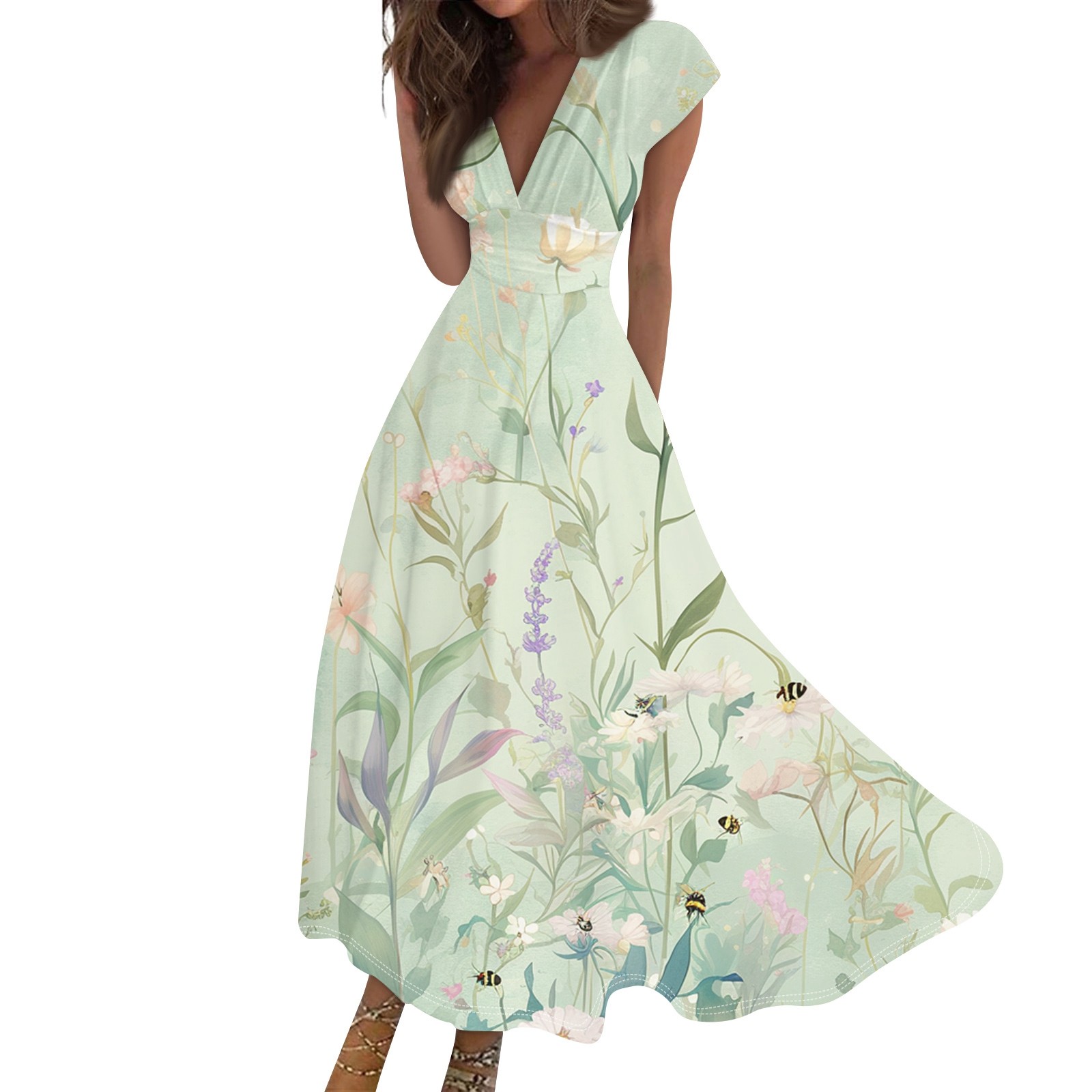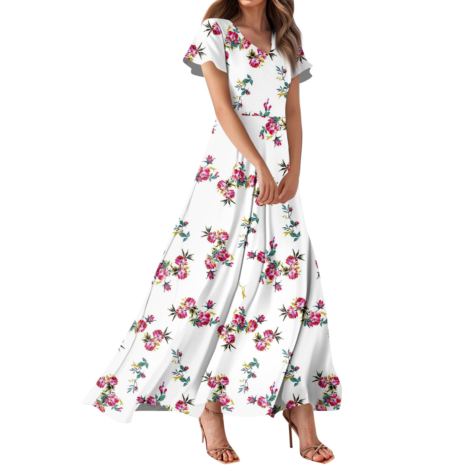 Codres Summer Beach Dresses for Women 2025 V Neck Flowy Maxi Dress ...