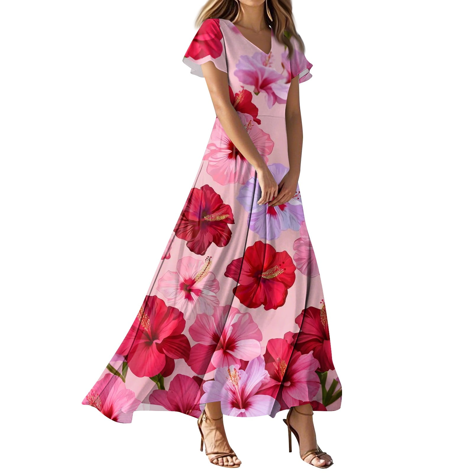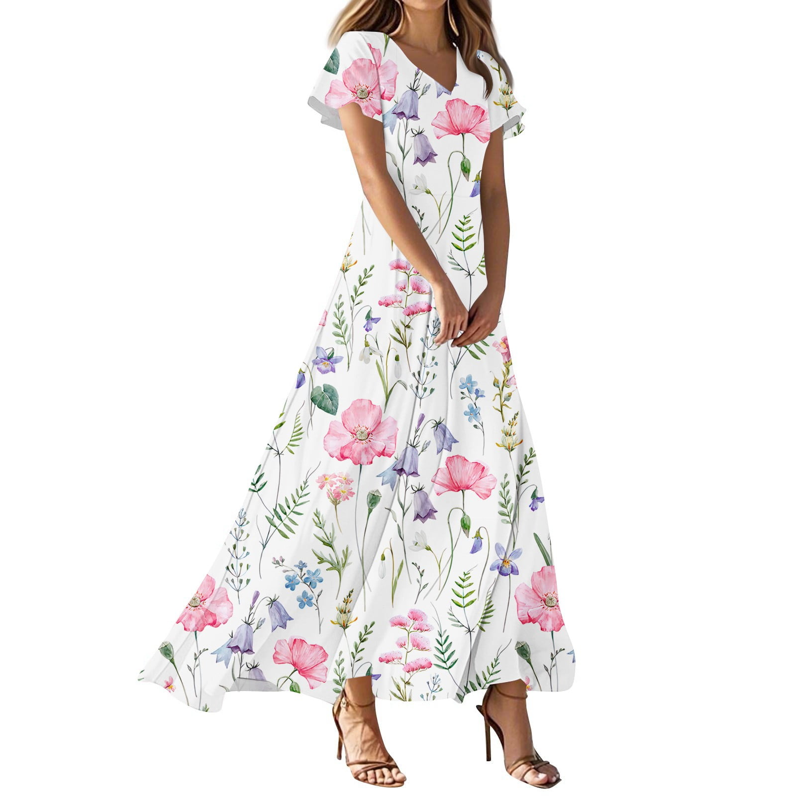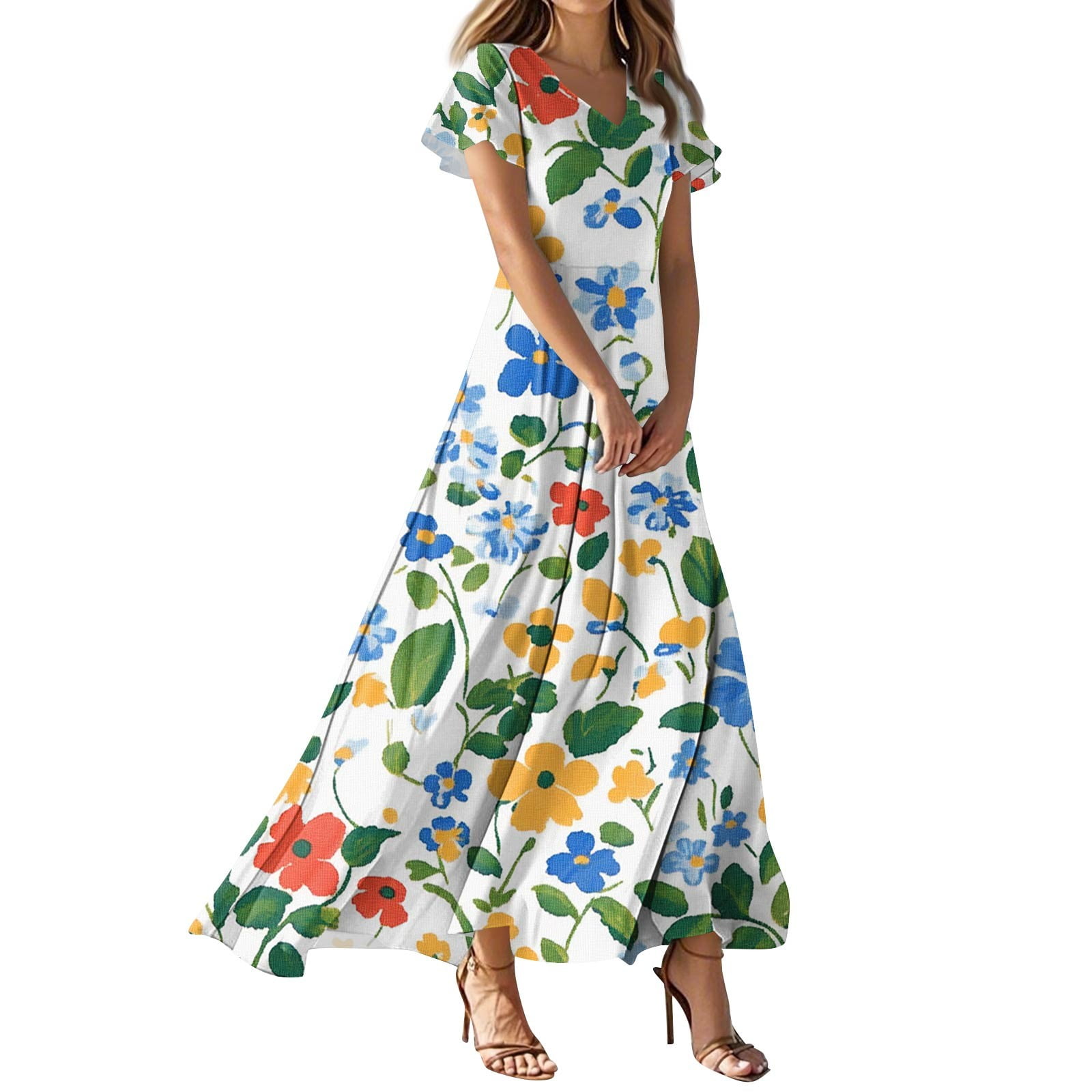 Codres Vacation Dresses for Women 2025 V Neck Summer Beach Flowy Maxi ...