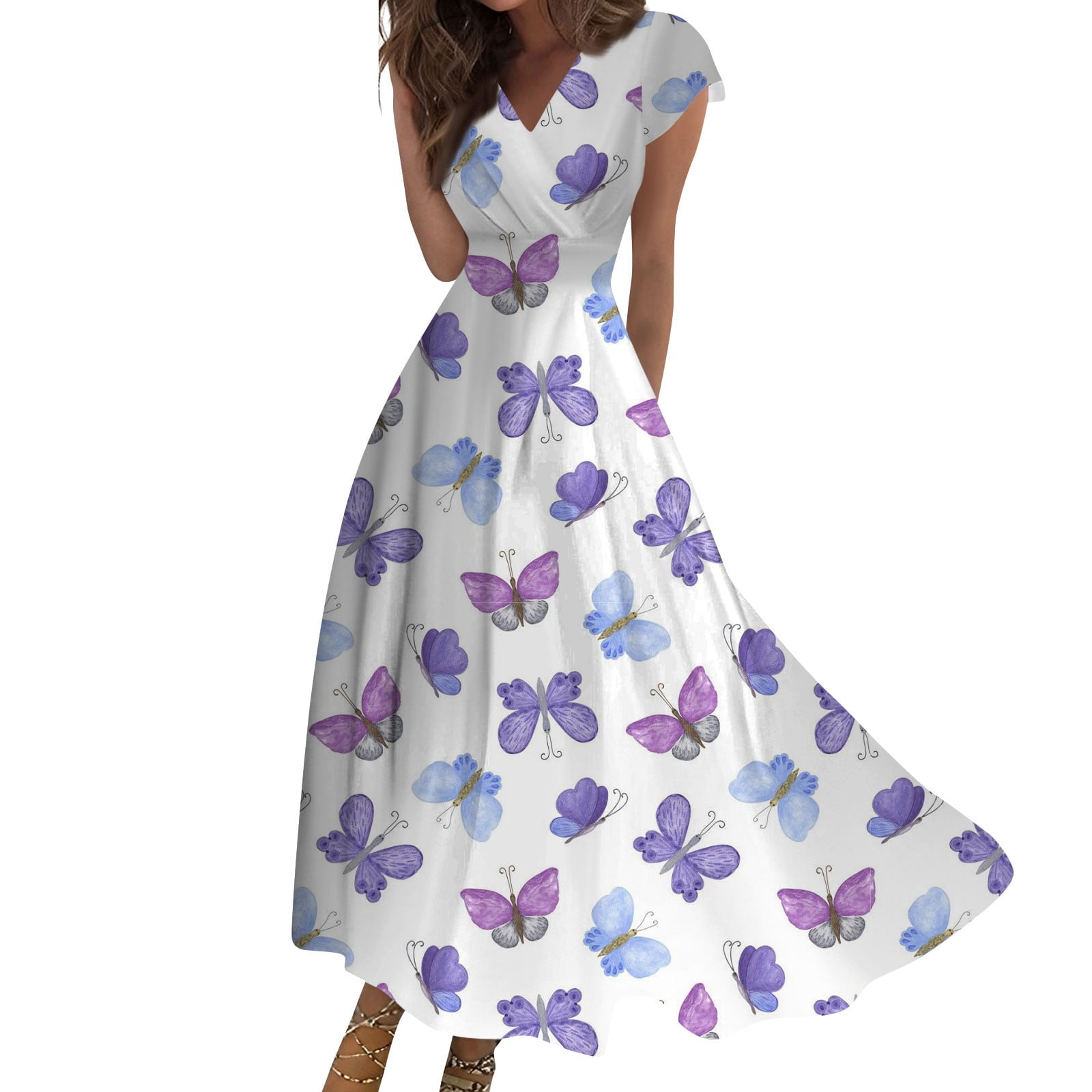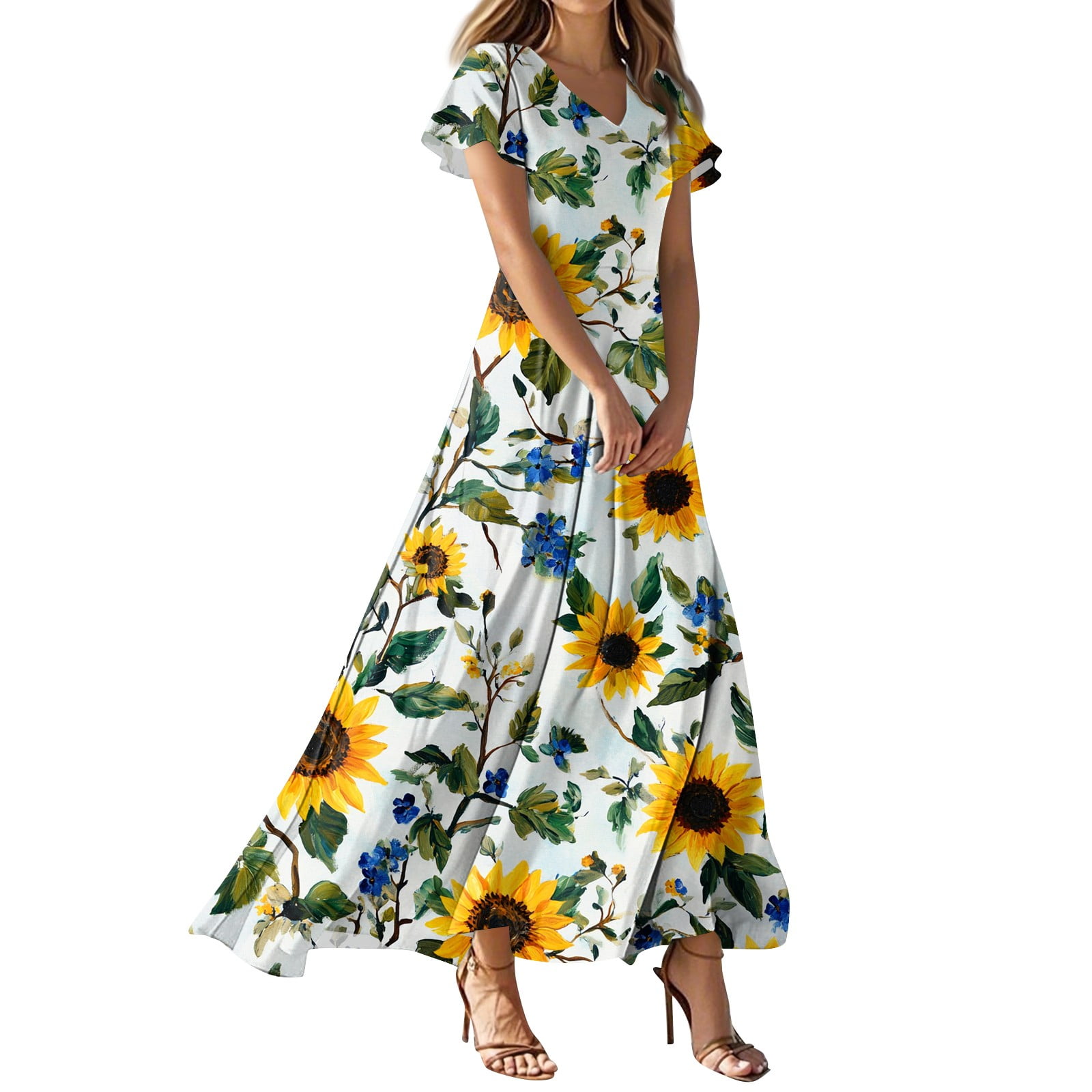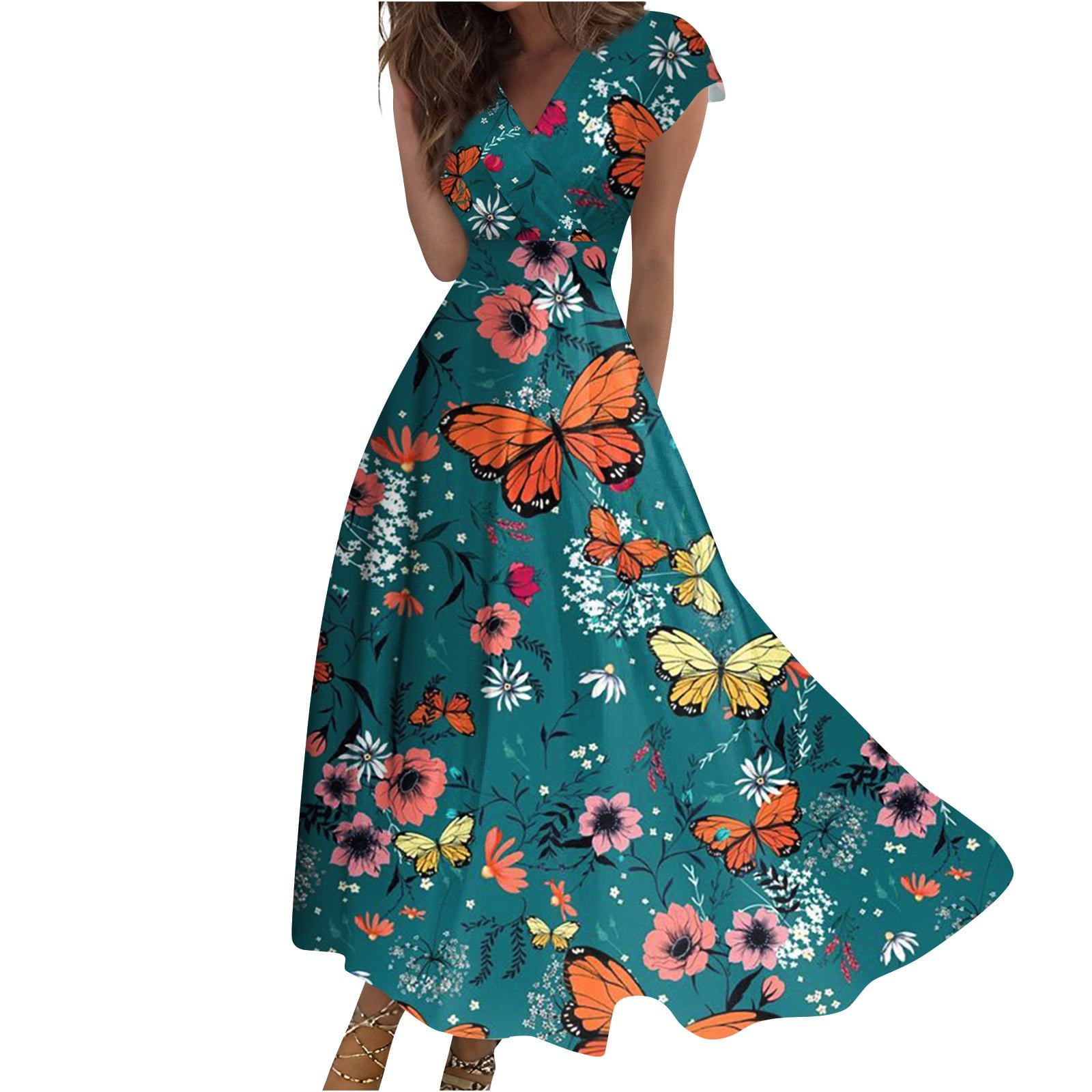 Codres Vacation Dresses for Women 2025 V Neck Summer Beach Flowy Maxi ...