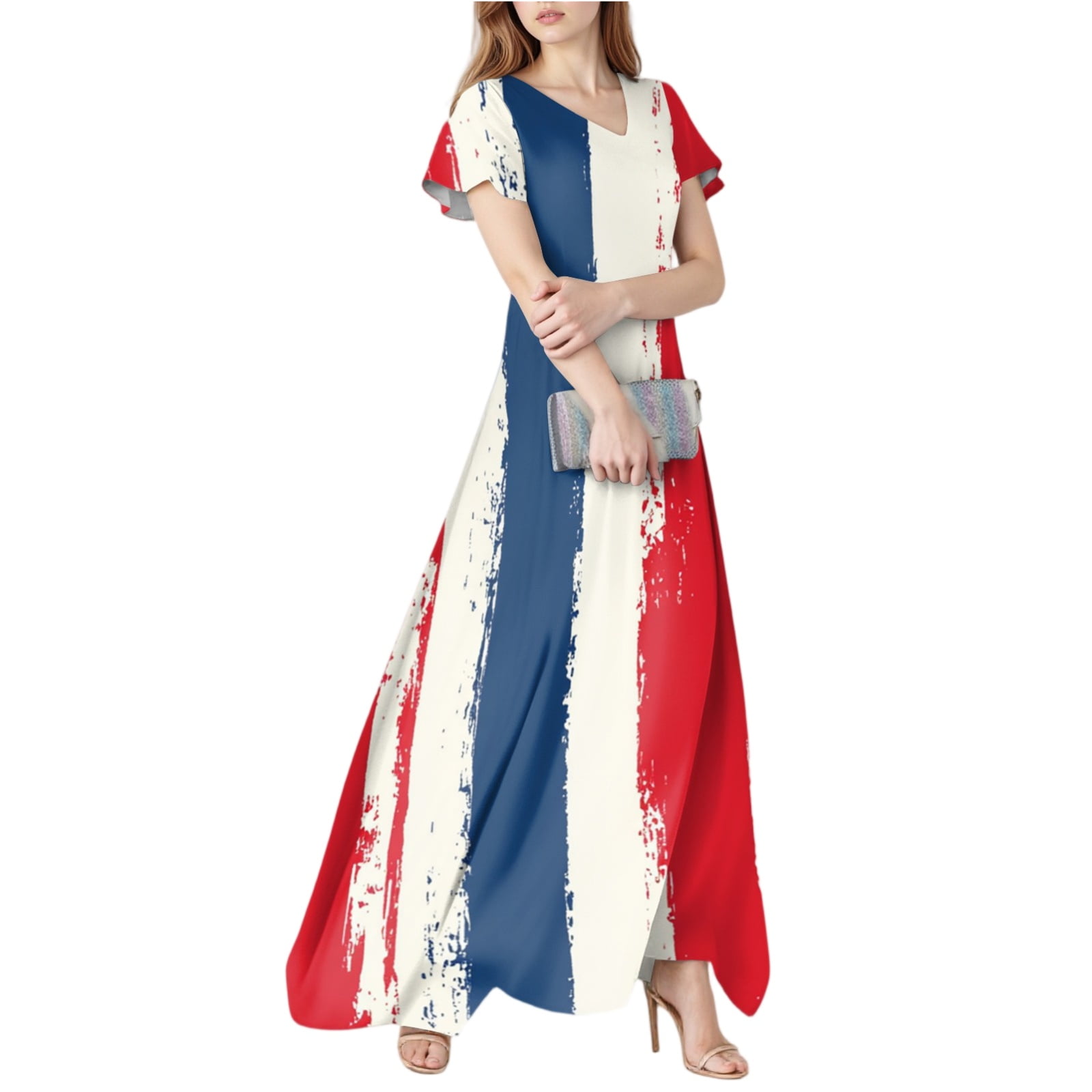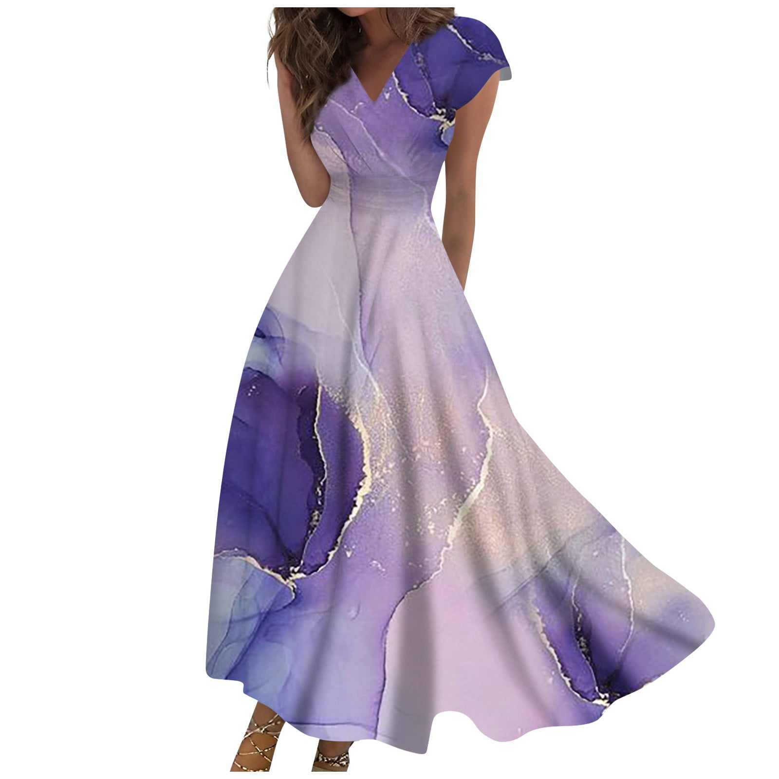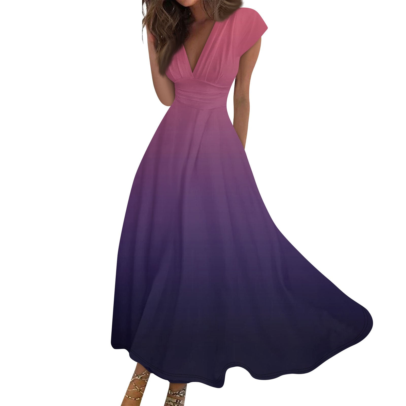 Codres Vacation Dresses for Women 2025 V Neck Summer Beach Maxi Dress ...