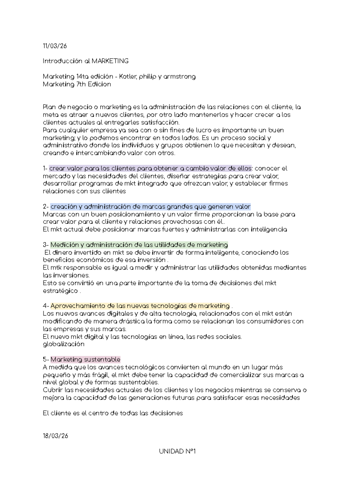 Mkt - Unidad 1-3: Fundamentos y Estrategias del Marketing - Studocu