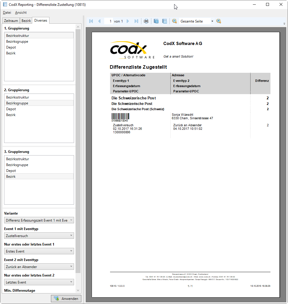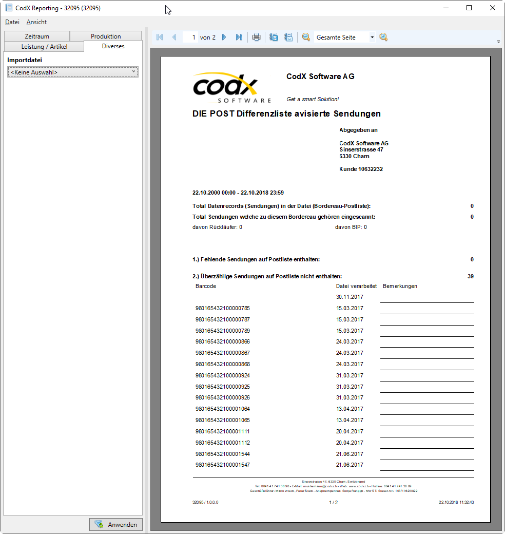 CodX Software AG > CodX PostOffice > Sendungsverfolgung
