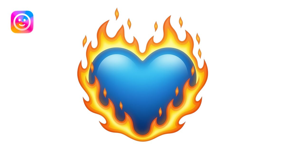 Coeur bleu enflammé les flammes sortant du coeur emoji | AI Emoji Generator