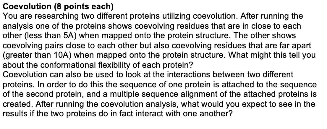 Solved Coevolution (8 points each) You are researching two | Chegg.com