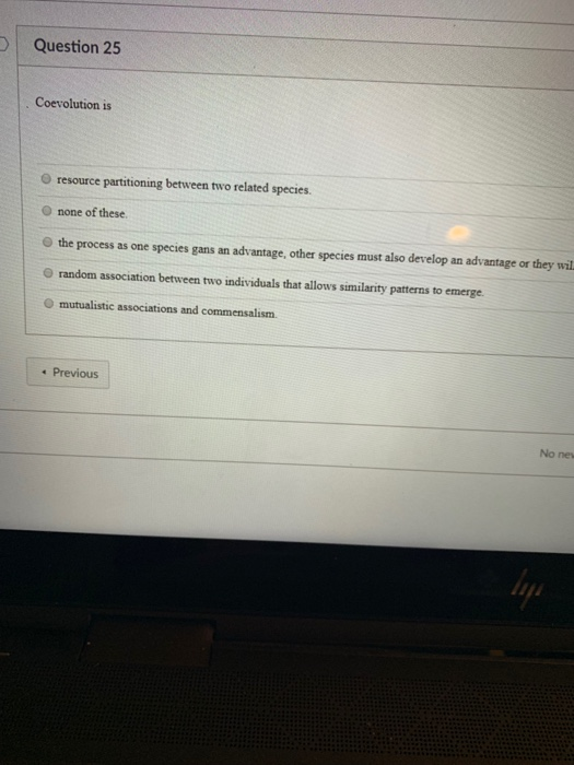 Solved Question 25 Coevolution is O resource partitioning | Chegg.com