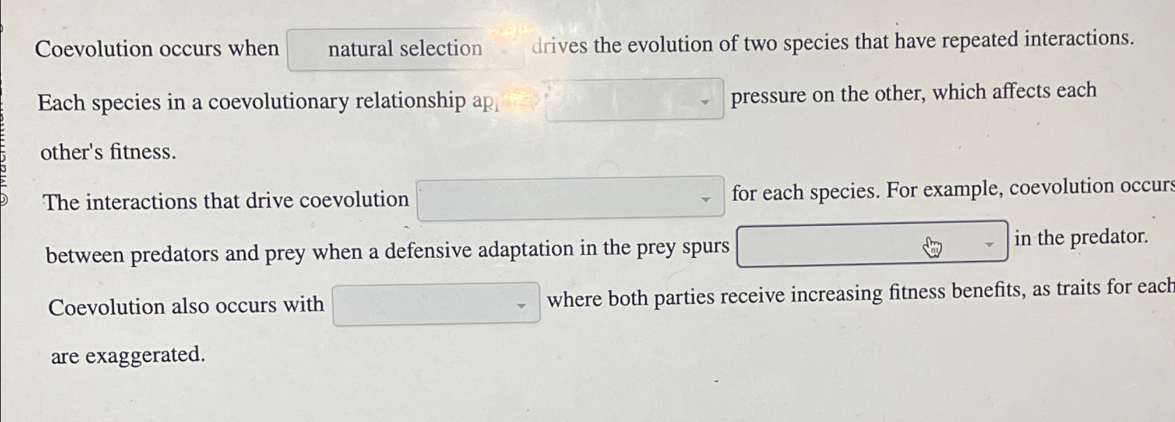 Solved Coevolution occurs when natural selection drives the | Chegg.com