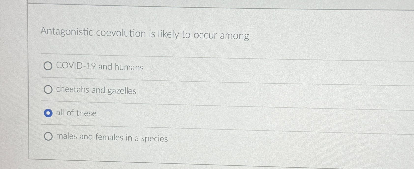 Solved Which of these statements about coevolution is true? | Chegg.com