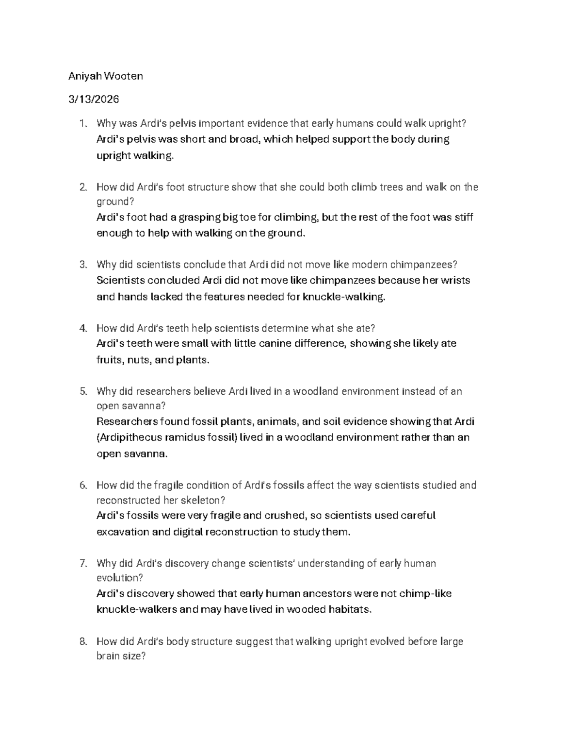 Adri Questions Part 2: Insights on Early Human Evolution - Studocu