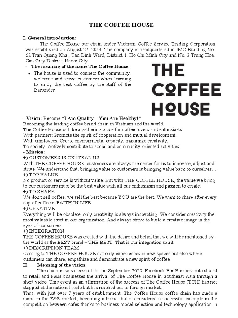 The Coffee House: Growth and Vision | PDF | Brand | Coffee