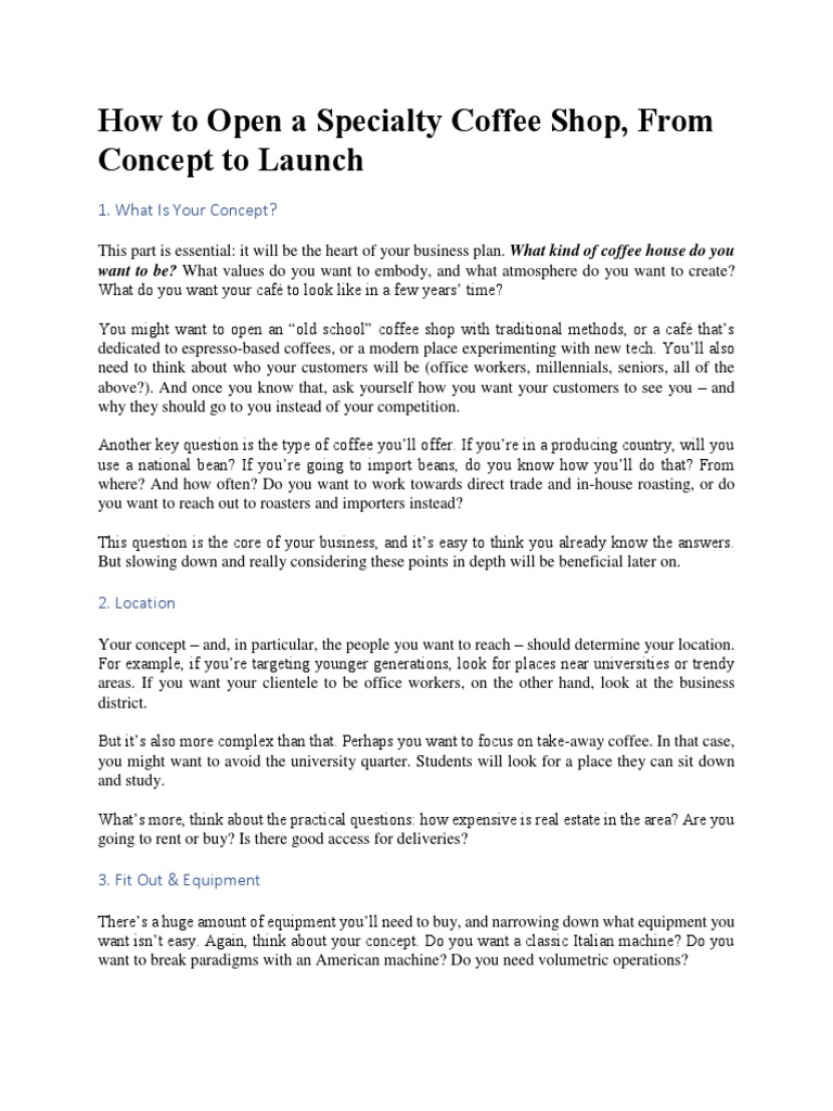 Launching Your Specialty Coffee Shop Guide | PDF | Retail | Business ...