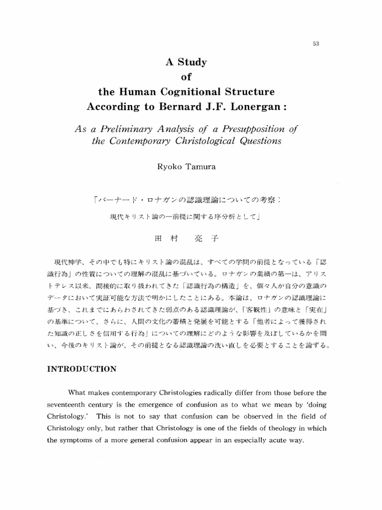 The Human Cognitional Structure According To Bernard J.F. Lonergan ...