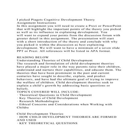 I picked Piagets Cognitive Development Theory Assignment Instruc.docx