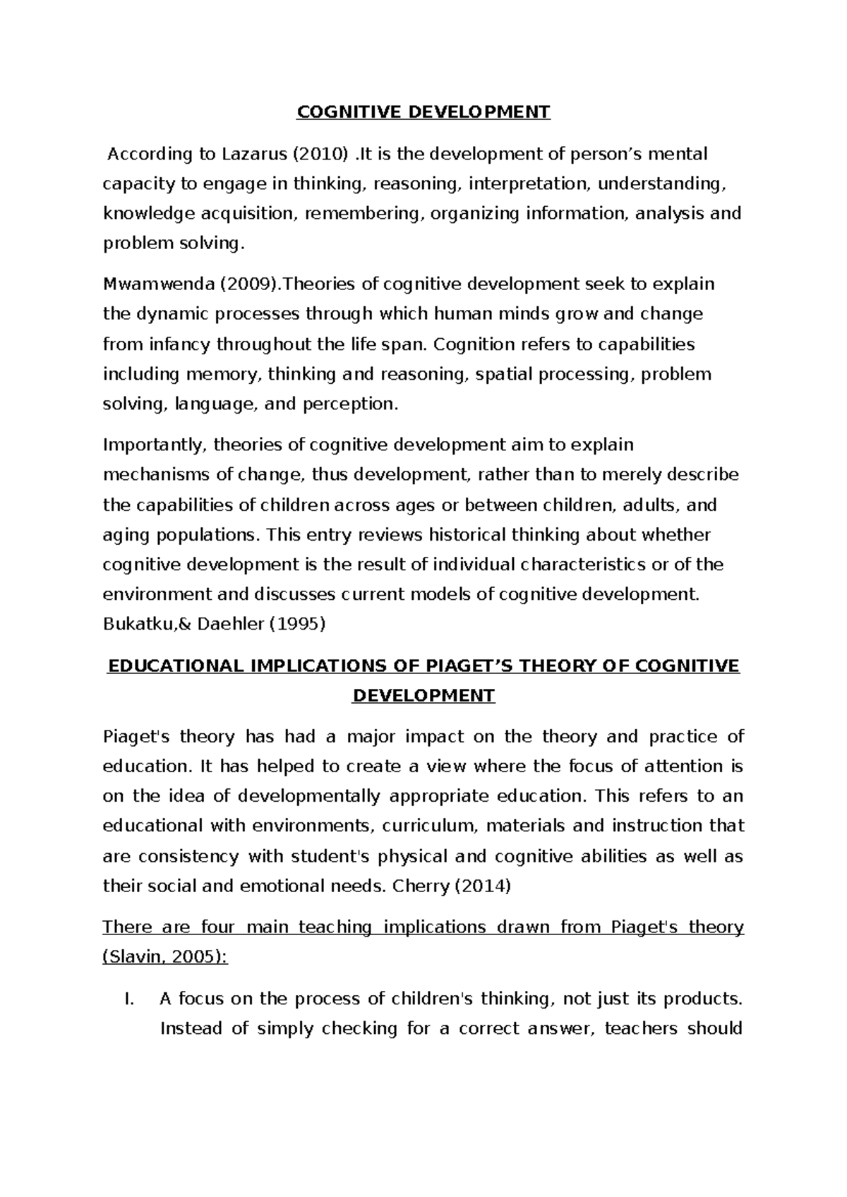CognitiveDevelopmentAssignment 1.doc - Cognitive Development Assignment ...