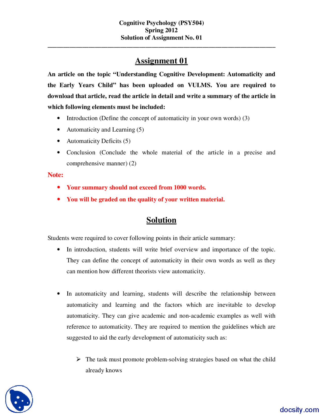 Understanding Cognitive Development Part 1-Psychology-Assignment ...