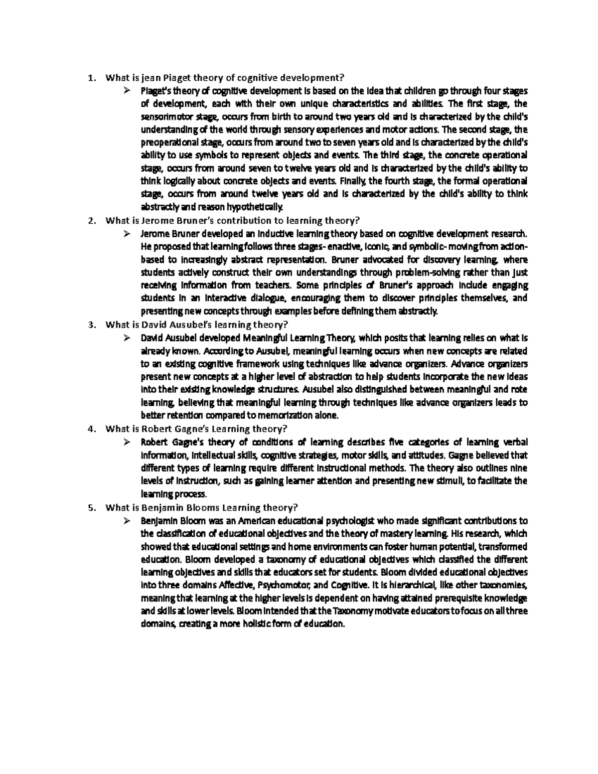 Assignment 2: Theories of Cognitive Development and Learning - Studocu
