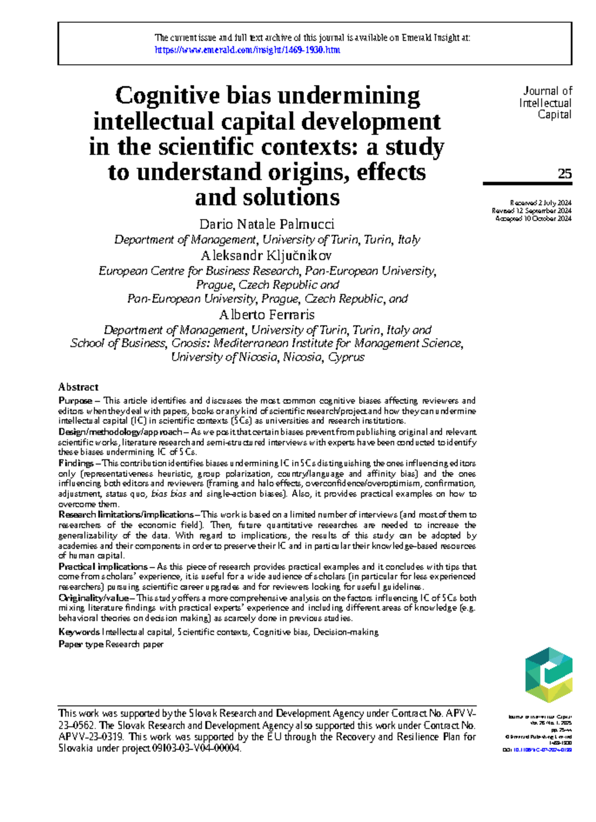 Cognitive Bias and Intellectual Capital in Scientific Contexts: JIC 26 ...