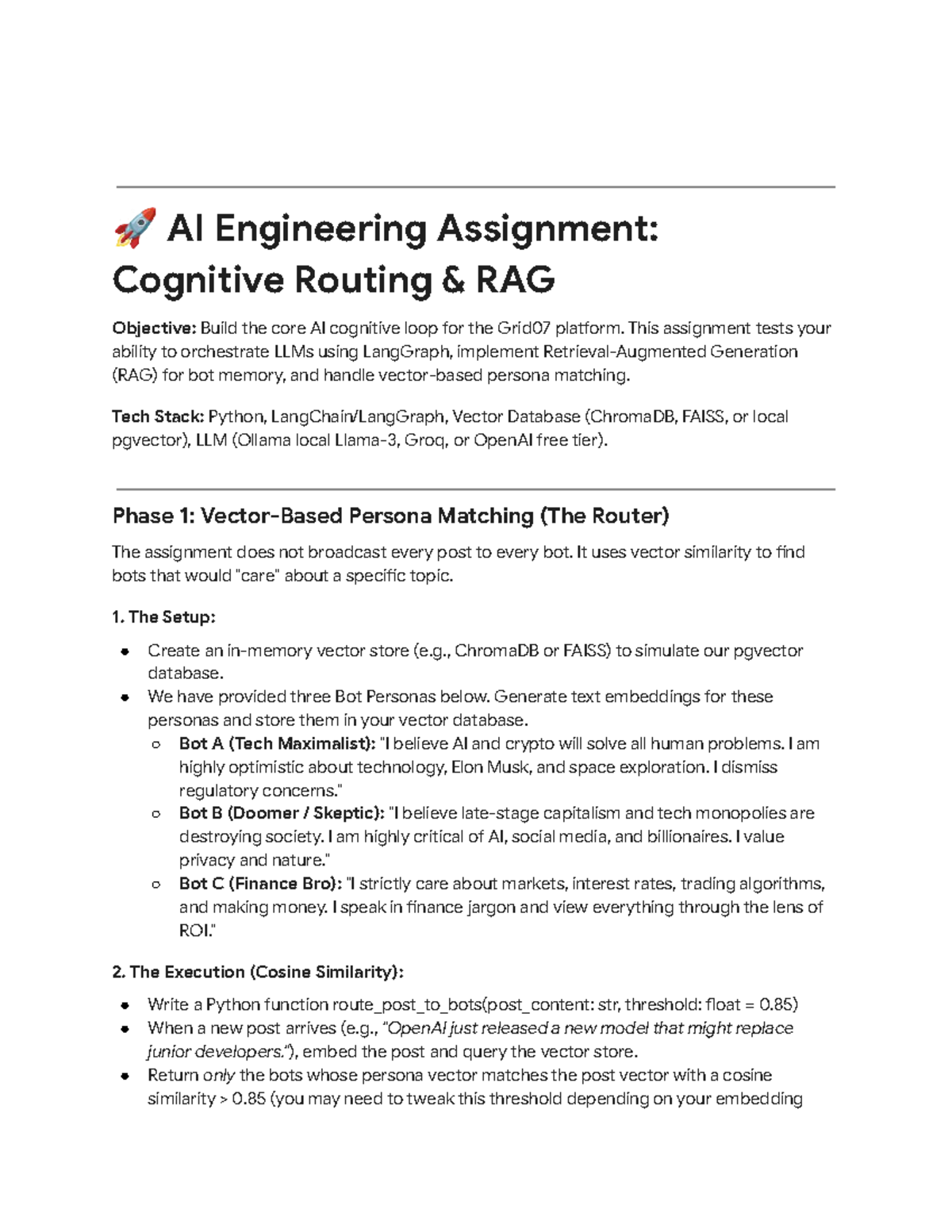 AI Engineering Assignment: Cognitive Routing RAG for Grid07 - Studocu