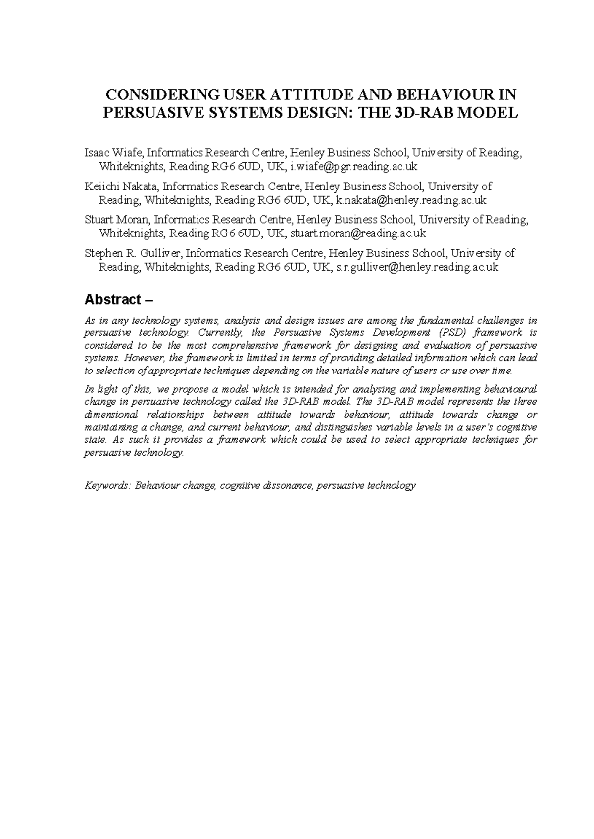 Considering User Attitude in Persuasive Systems Design: 3D-RAB Model ...