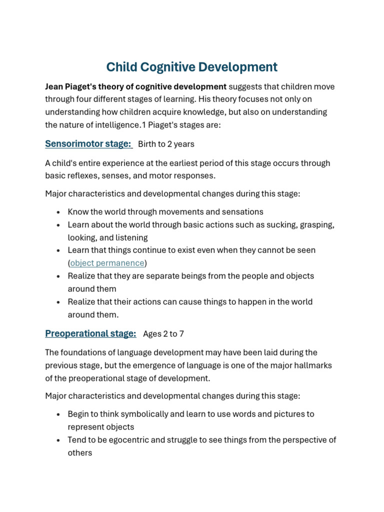 Cognitive Development Stages Explained | PDF | Cognitive Development ...