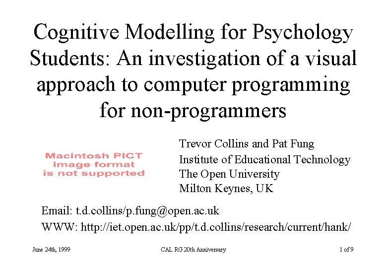 PPT - Cognitive Architectures: A Way Forward for the Psychology of ...