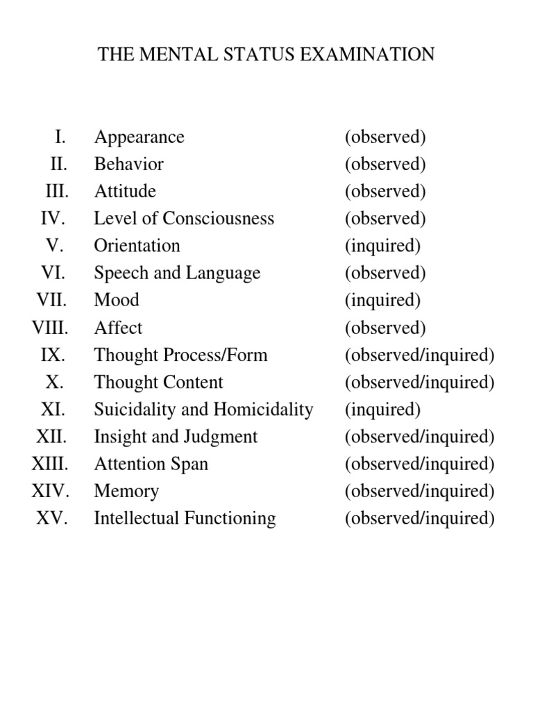 Mental Status Examination Guide | PDF | Neuropsychological Assessment ...