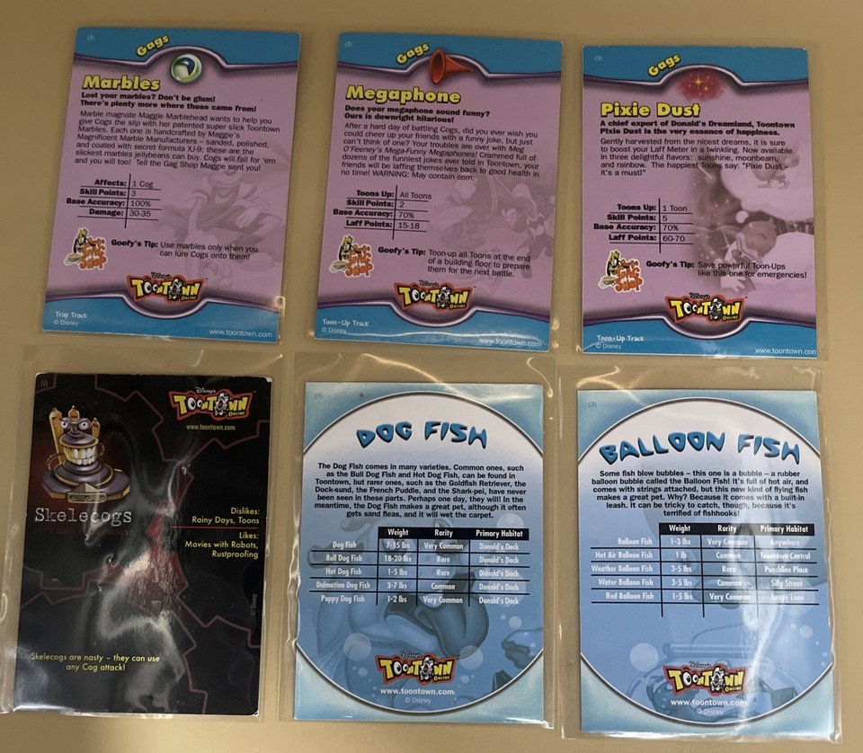 Toontown Disney Online - Series 3 Trading Cards (Lot Of 6) - Cogs, Fish ...