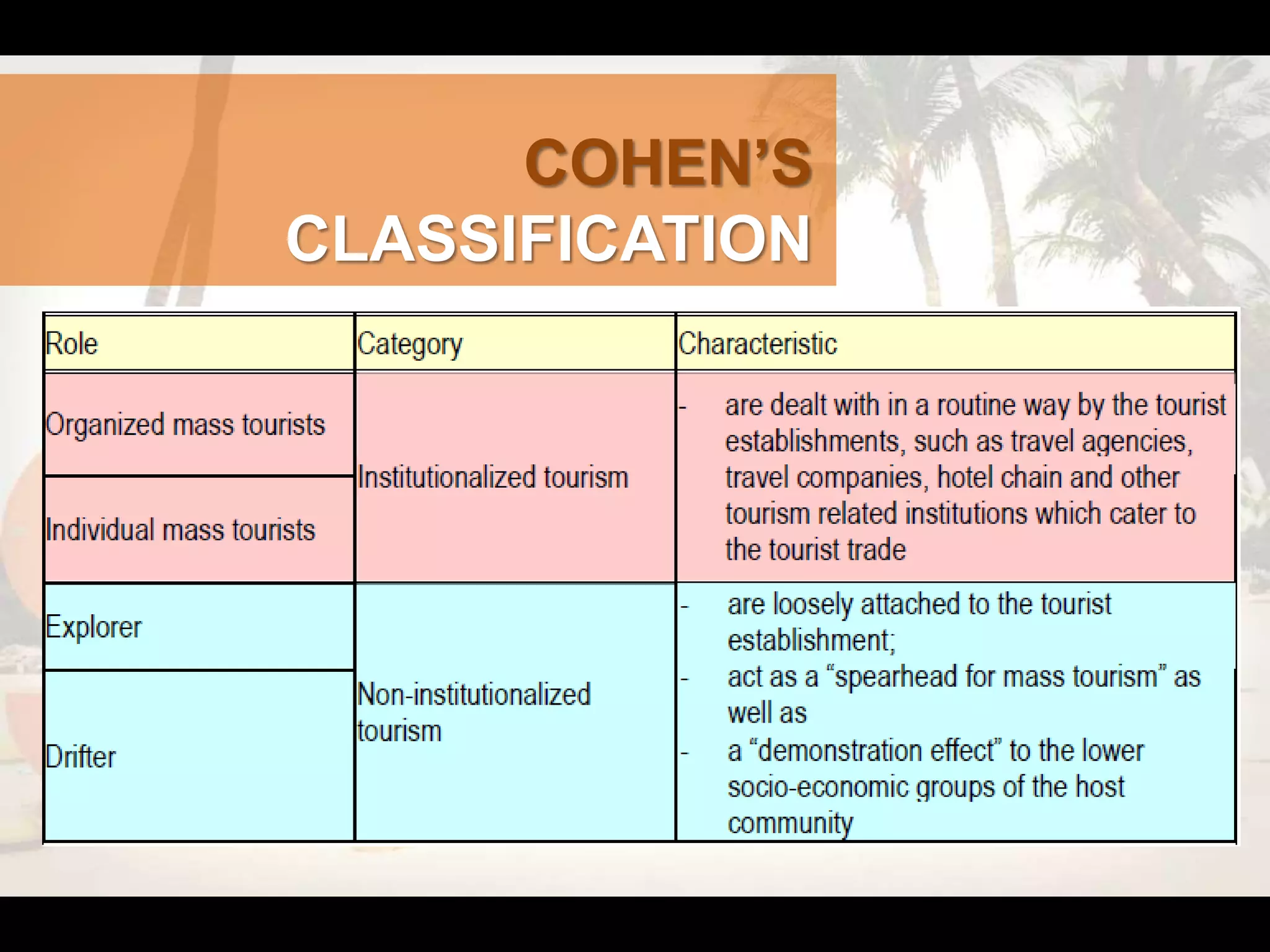 Cohen's Typology of Tourists || Institutionalized || Non ...